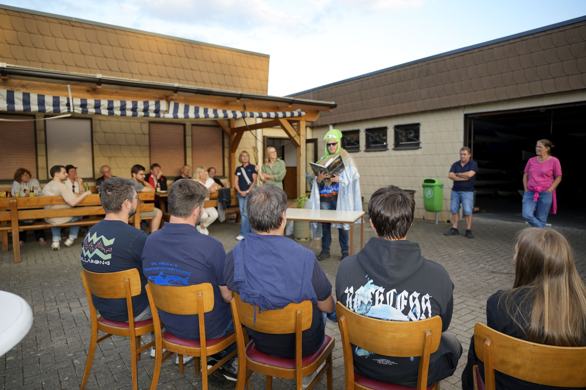 So haben einstimmig beschlossen, dass sich jeder nächsten Freitag was mitbringt, um den Abend auf der Terrasse des Freibades ausklingen zu lassen!