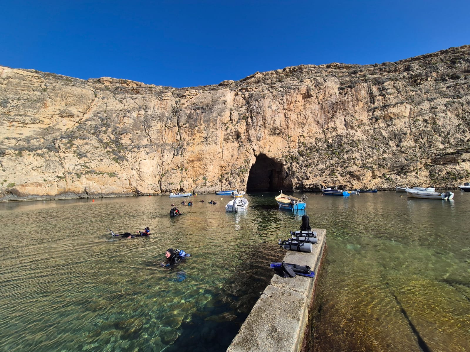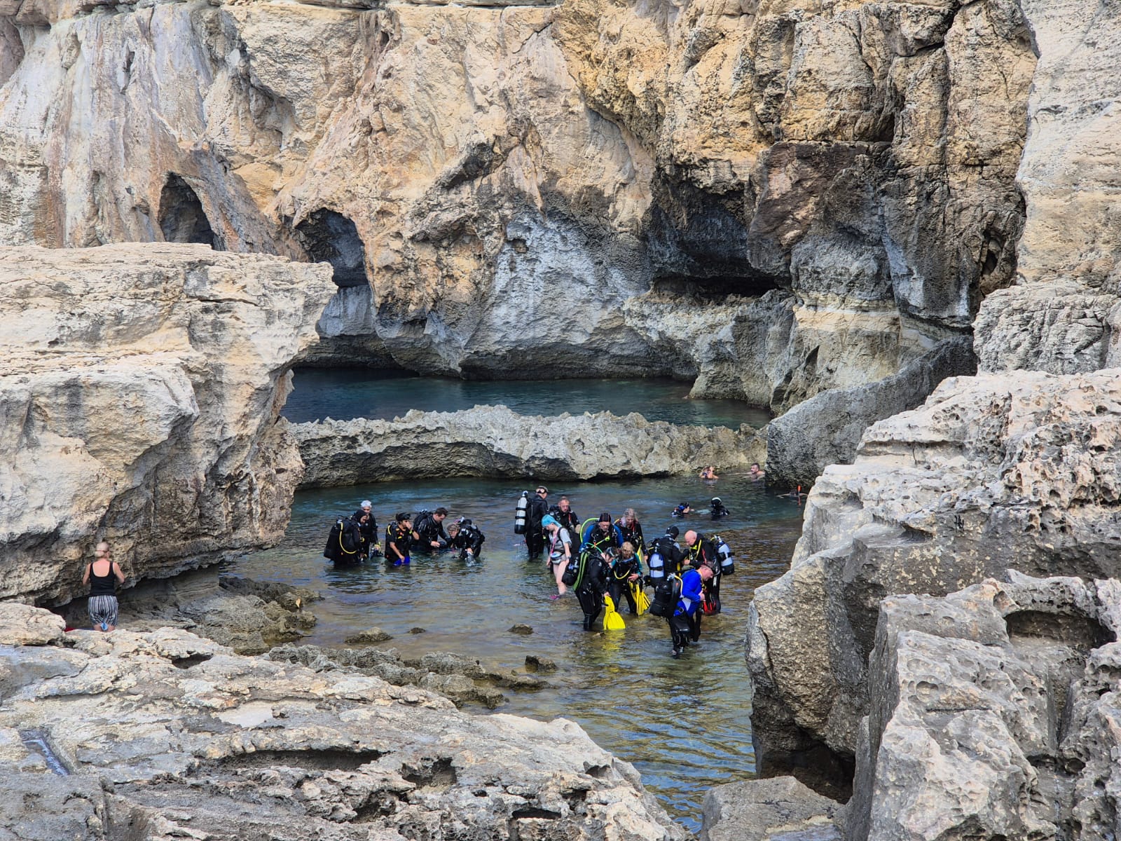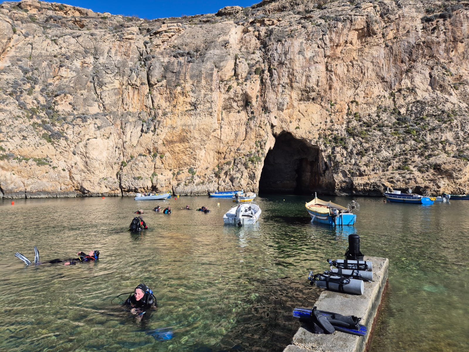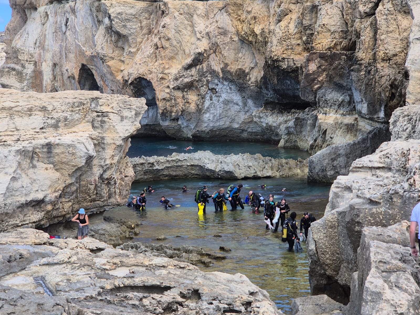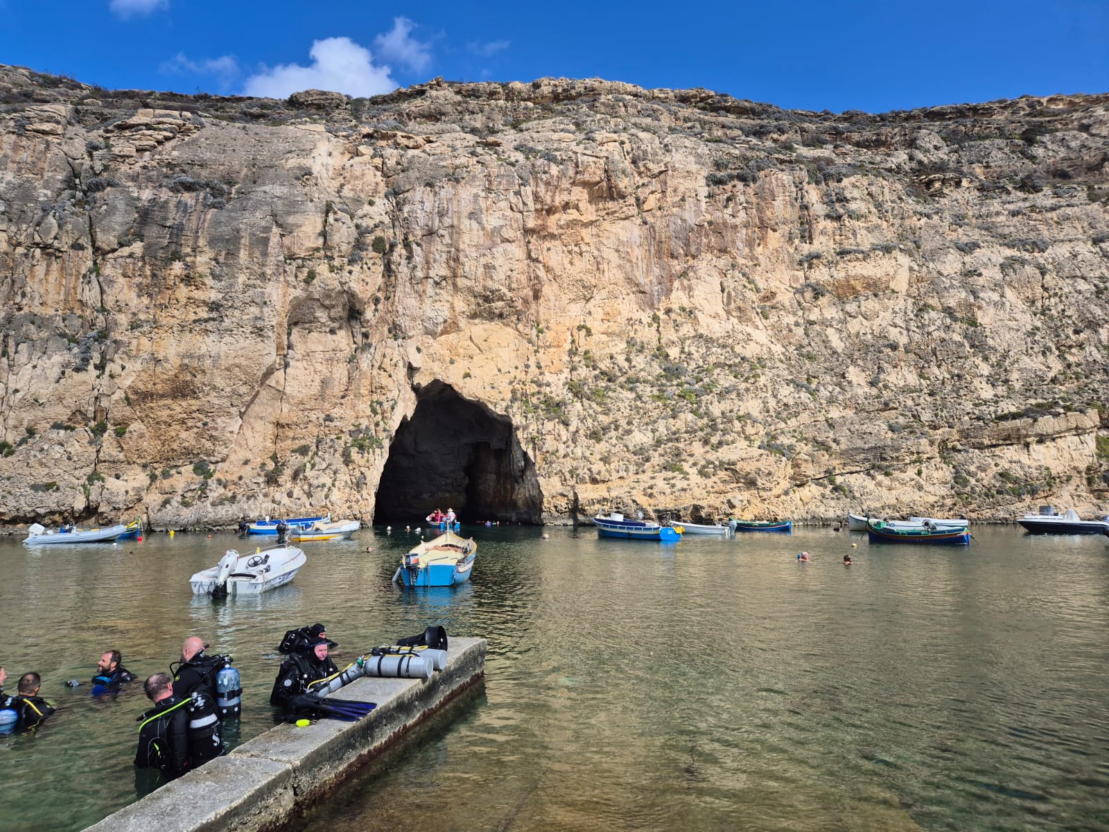 Aber schnell hatten sich alle an die Neuigkeiten gewöhnt und es konnte getaucht werden! Die Unterwasserwelt auf Gozo hat einfach ihren eigenen Charme, der immer wieder begeistert. So konnten Grotten betaucht werden, in denen man z. T. sogar auftauchen konnte, da sich im Inneren Luftblasen befanden. Auch das Durchtauchen von div. Tunneln und Canyons erforderte einiges Können.