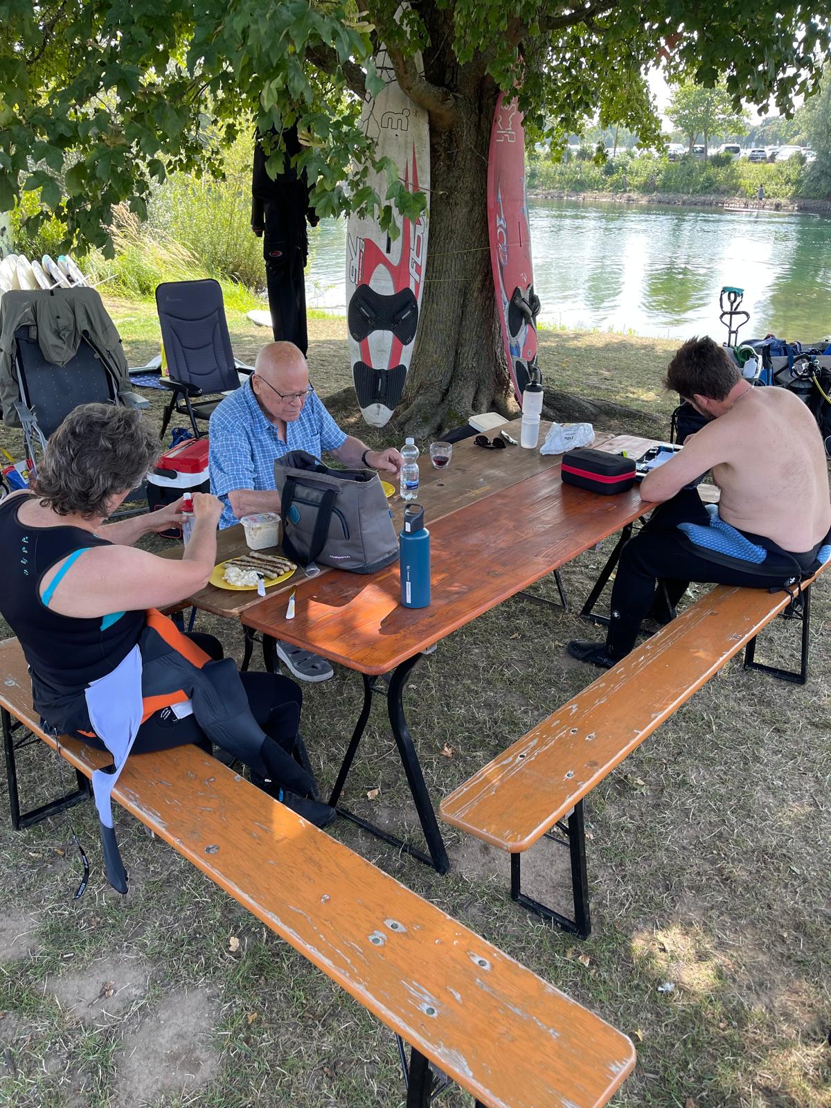 Besonderer Gast war unser „Alterspräsident“ Peter, der nach längerer Zeit mal wieder einen schönen Tag mit uns am See verbrachte.