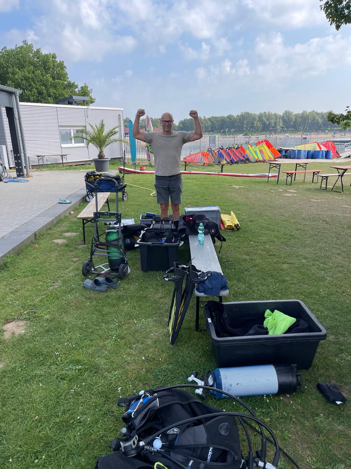 Danach meinte der Wettergott es gut, es wurde zusehends wärmer und die Hoffnung auf einen zweiten erfolgreichen Abend stieg. Das Equipment wurde vorbereitet, Tauchausbilder und Helfer standen bereit – und am Ende des Abends konnten 12 begeisterte Schnuppertaucher gezählt werden.