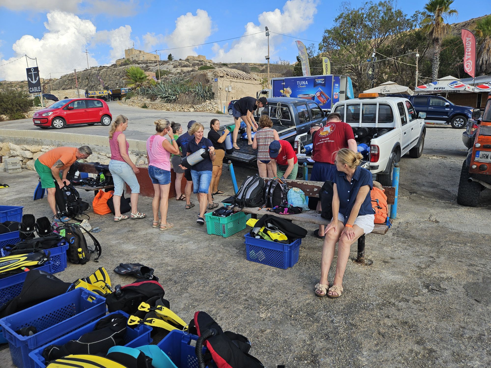 Besonders hervorzuheben ist auch noch die tolle Gemeinschaft, die sich auch beim Tauchen immer wieder zeigte. Egal, ob noch Blei unter Wasser gesammelt wurde, ein Anzug vergessen wurde (oder auch nur falsch herum angezogen wurde) oder gleich die Maske und der Computer verloren ging, irgendwie gab es eine Lösung.
