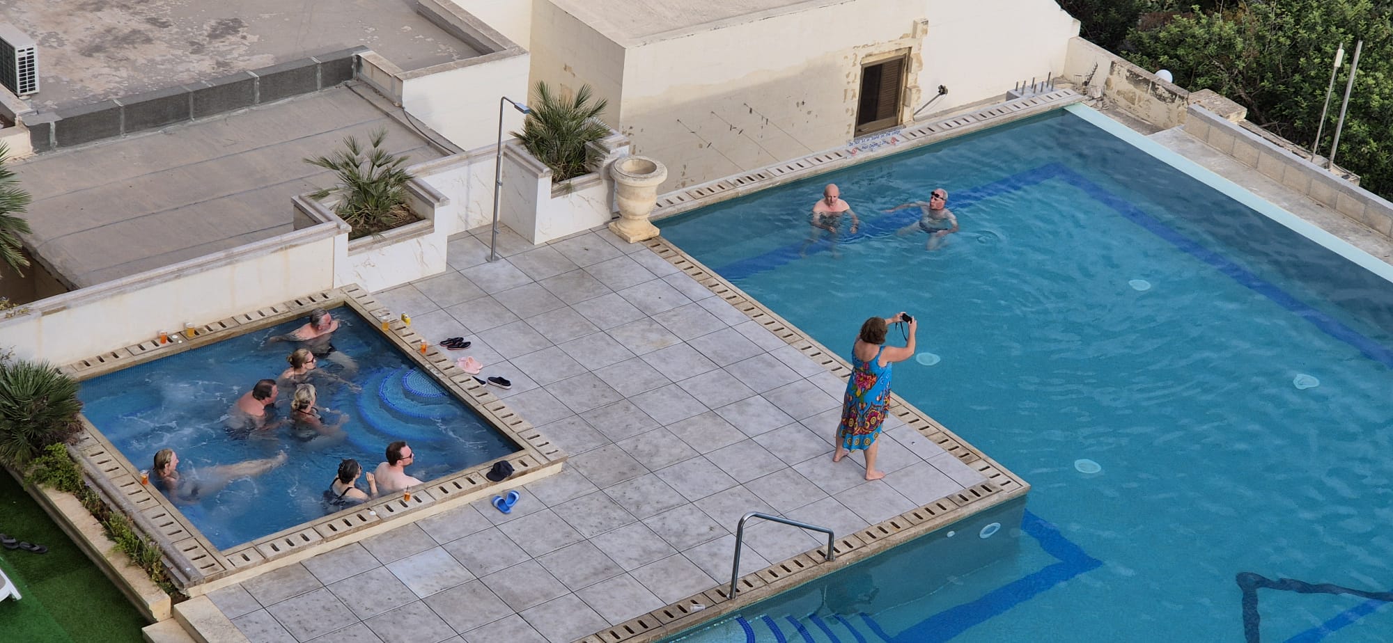 Neben dem Tauchen kam natürlich aber auch die Erholung nicht zu kurz. So traf man sich nach den Tauchgängen zum relaxen im Whirlpool und entspannte bei einem Aperol oder Dekobier. So lässt sich der Urlaub aushalten.