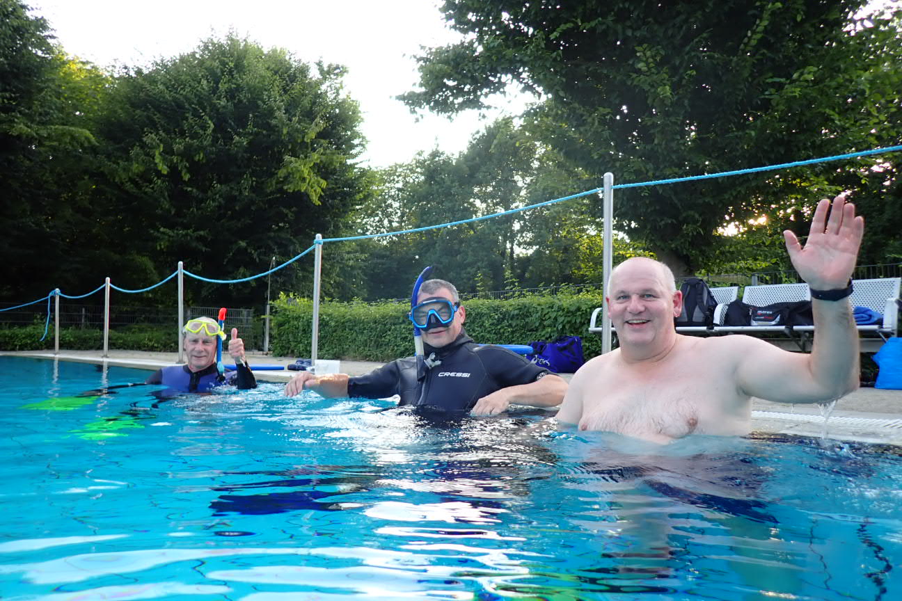 Dadurch angespornt waren sich alle schnell einig: einer geht noch! Es wurde fix die Durchführung eines weiteren Schnuppertauchens am darauf folgenden Montag an die Stadt gemeldet, wo man sich über die spontane Durchführung freute und dass die Sportangebote im Freien gut angenommen wurden. Die Werbung wurde intensiviert, alles wie gehabt vorbereitet und 19 Teilnehmende konnten zum Schluss sagen: Wir sind getaucht!